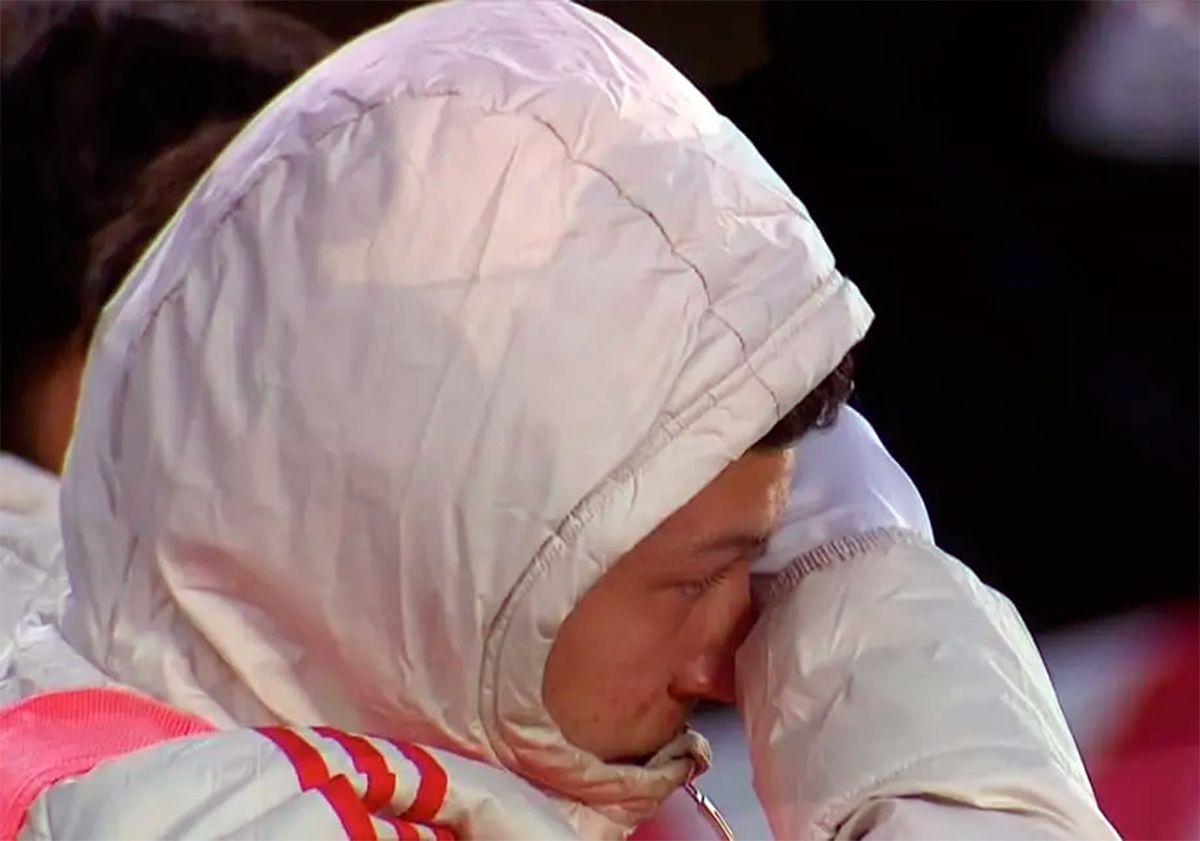 Las cámaras inmediatamente captaron a otra persona de su lazo sanguíneo en la misma sintonía emocional: su hijo Bastian, que juegan en las Inferiores y esta noche -como tantas otras de partido- ejerce como alcanzapelotas. Al pie de la cancha, el joven que juega en la Novena de River lloró desconsolado cuando vio entrar a su padre.