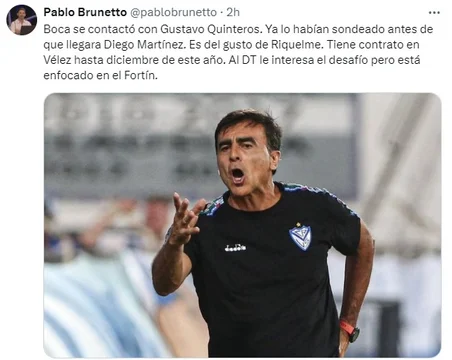 Según informó este martes por la tarde el periodista Pablo Brunetto, Boca se habría contactado con el entrenador Gustavo Quinteros, actual DT del líder Vélez Sarsfield.