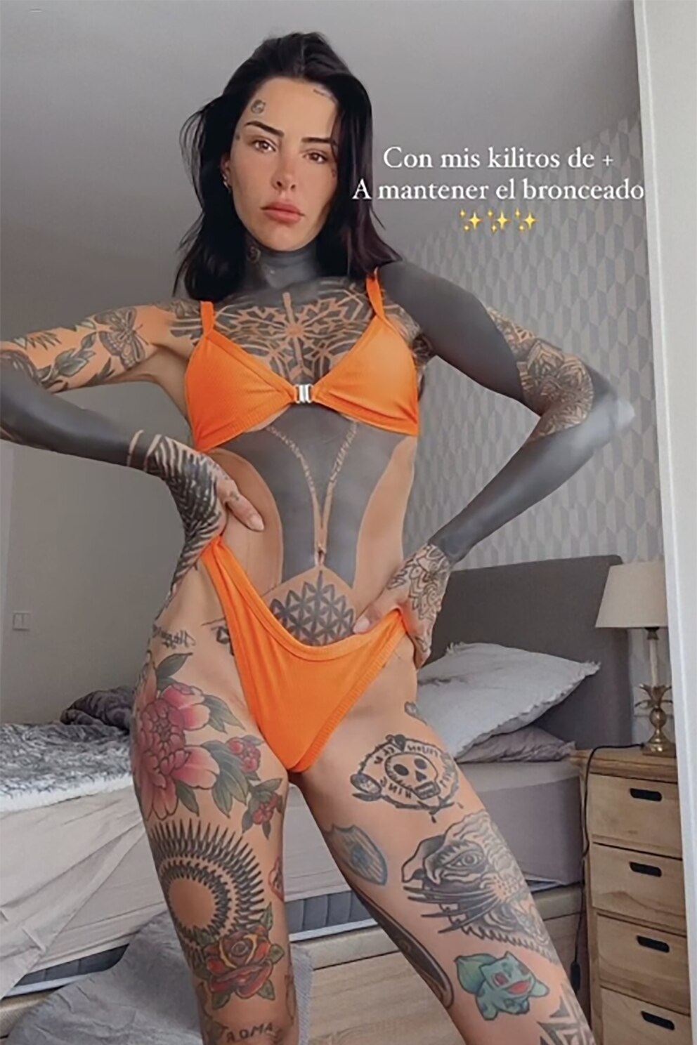 A esta imagen se le sumó un breve video de la diseñadora posando con su vestuario. Desde abajo hacia arriba, la influencer posó mientras la cámara captaba en detalle todos los diseños de los tatuajes que lleva plasmados en su piel. Por tratarse de una toma más de cerca, se pudo apreciar que en su cuello colgaba un collar con el dije de una cruz plateada.