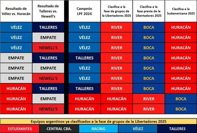 Además estos resultados definirán los clasificados a la Copa Libertadores y Copa Sudamericana: teniendo en cuenta de que hasta ahora Boca iría a la fase previa de la máxima competencia continental pero todo puede cambiar si se dan ciertos resultados: