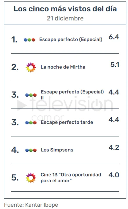 La primera parte de Escape Perfecto fue lo más visto con 6.4. Aunque si se promedia con la segunda parte del ciclo de Iván de Pineda (4.4), la diferencia entre con “La Chiqui” fue mínima.