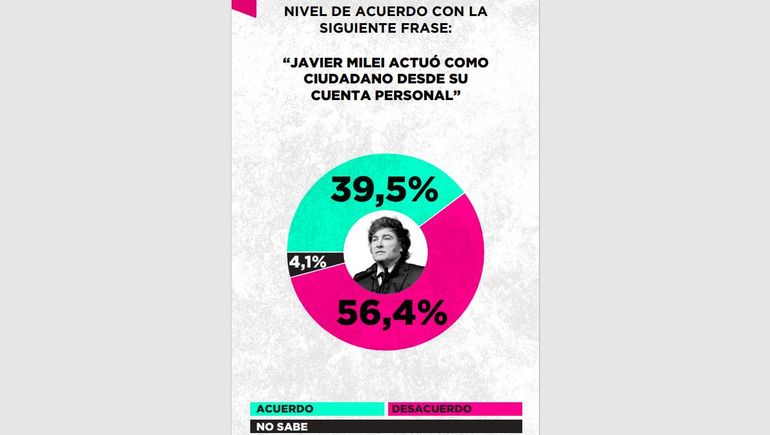 La defensa del gobierno de separar las funciones del presidente de sus acciones en redes sociales no parece haber tenido, tampoco, correlación con la realidad. Un 56,4% de los encuestados no está de acuerdo en que Javier Milei haya actuado como ciudadano desde su cuenta personal. Más impactante es que un 83% de los participantes opina que Milei debería dejar de desempeñar el papel de influencer, lo que evidencia un descontento con la forma en que el Presidente gestiona su comunicación con la ciudadanía.