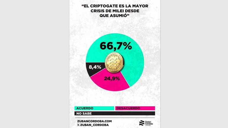 La consultora Zubán Córdoba publicó este miércoles por la tarde un adelanto de la encuesta completa que difundirá el próximo domingo sobre cómo afectó el escándalo de la criptomoneda $LIBRA, a la imagen del presidente Javier Milei y todo el Gobierno de la República Argentina. El relevamiento fue se realizado entre el 18 y el 19 de febrero, con la participación de 1200 personas.