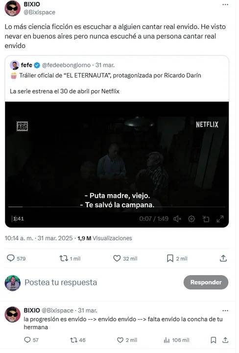 El posteo, cargado de ironía, refería a una escena del trailer de El Eternauta, la serie que protagoniza Ricardo Darín. Y algunos lo tomaron con literalidad.