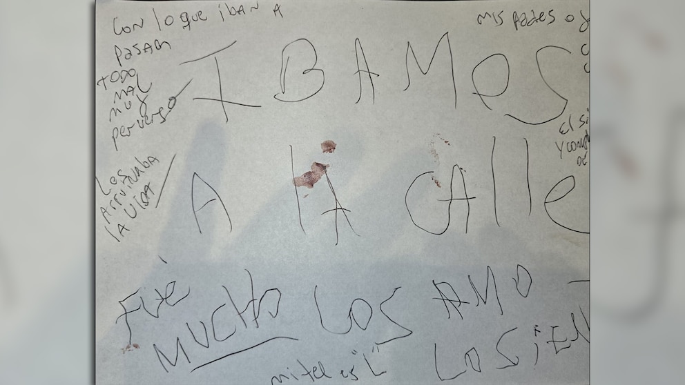 Infobae había accedido el mismo miércoles a parte de lo que decía la carta que dejó Laura Leguizamón, sindicada por los investigadores del triple crimen de Villa Crespo como la mujer que mató a su esposo y sus hijos y luego se suicidó. Las fuentes habían comentado que en el texto, desordenado, se leía “muy perverso”. Este jueves, este medio accedió a la foto de ese documento clave. Manchas de sangre y un “lo sien...” que se distingue en el margen inferior derecho son parte de las peculiaridades de una imagen que da cuenta del horror.