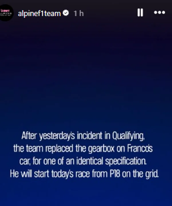 Un cambio de último momento de Alpine en el auto de Colapinto en la previa de la largada del gran Premio de Barcelona y otro puesto en la grilla