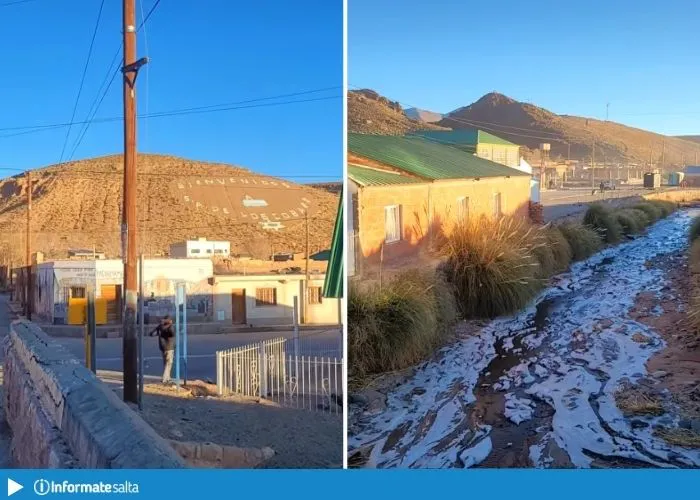 Con -12° el pueblo de San Antonio de los Cobres amaneció totalmente cubierto de escarcha mientras que uno de los ríos que atraviesa la ciudad llegó a congelarse.