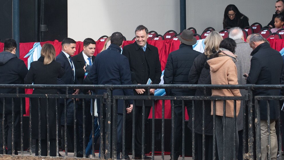 El vocero presidencial, Manuel Adorni, ingresa al palco oficial (Jaime Olivos)