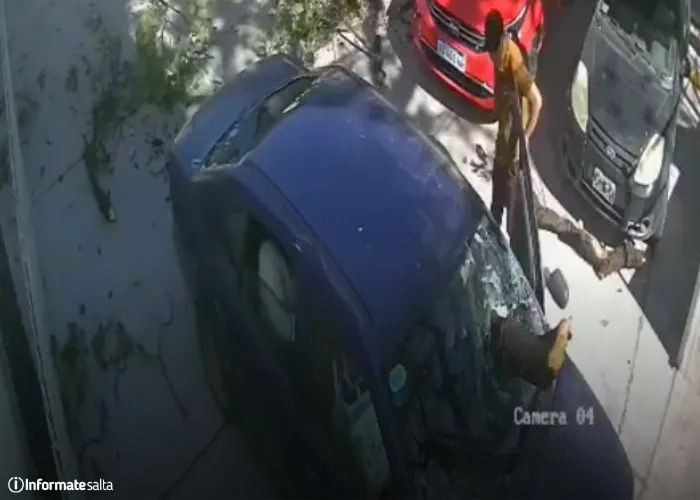 La rama cayó a causa del fuerte viento en el momento que el vehículo salía de la playa de estacionamiento. En el auto viajaban un hombre, su esposa y su hija, afortunadamente no hubo heridos.