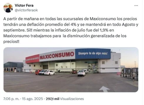 El anuncio de una rebaja de precios del 4% por parte de la cadena mayorista Maxiconsumo, propiedad del empresario Víctor Fera, dueño también de la icónica marca Marolio, desató una ola de reacciones encontradas en las redes sociales. Lo que se presentó como una buena noticia para el bolsillo generó un intenso debate entre el agradecimiento de algunos clientes y la furia de otros, que denunciaron aumentos previos y problemas en las sucursales.