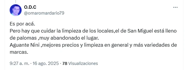 Limpieza y mantenimiento: Otro consumidor se quejó del local de San Miguel, afirmando que está "lleno de palomas, muy abandonado" y que prefiere a la competencia por “mejores precios y limpieza en general”.