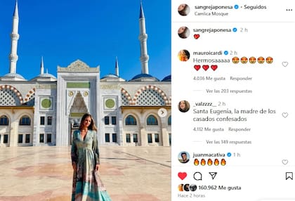 Mientras que en el patio de la mezquita fue fotografiada con diferentes poses y en distintos ángulos, dentro del templo fue más modesta y dejó entrever las maravillas arquitectónicas del sitio. Como reacción ante la belleza del lugar, publicó las imágenes con un emoticono de corazón. De inmediato, en la sección de comentarios, Icardi manifestó: “Hermosa”.