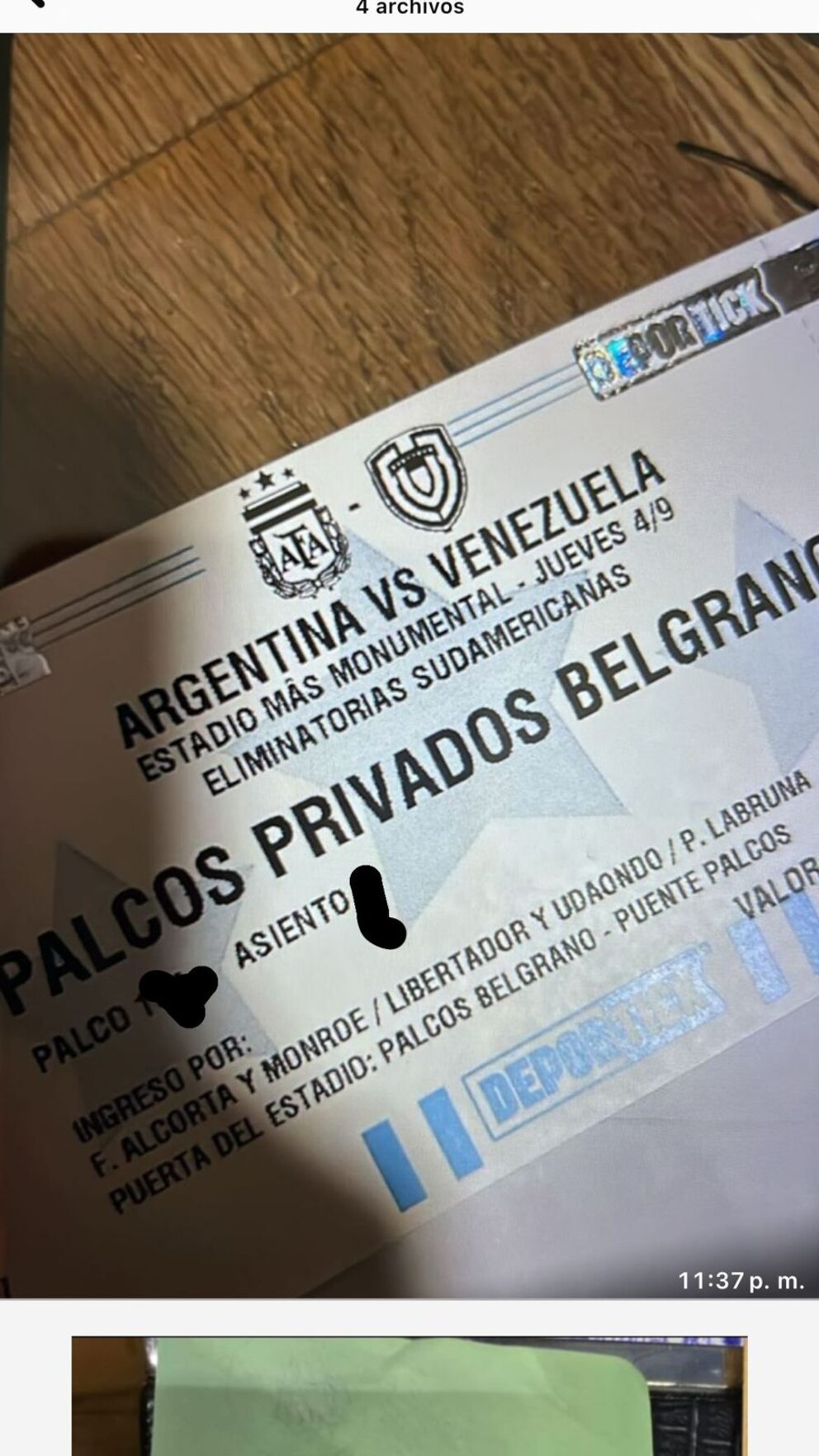 Y en las histories hace una semana ya adelantaba que tenía entradas para el partido de esta noche de la Selección ante Venezuela, en lo que sería el último de Lionel Messi en el país por Eliminatorias: “Arrancamos, luz verde para comprar”.