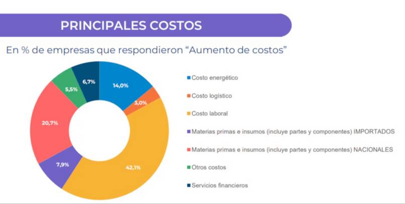 El aumento de costos se ubicó entre las mayores preocupaciones. El costo laboral (42,1%) se destacó como el más relevante, seguido por el costo de las materias primas e insumos nacionales (20,7%). (con información de TN)