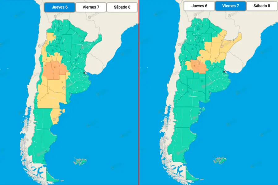 “Conforme el sistema de altura se desplace al noreste, las lluvias y tormentas se irán focalizando especialmente, sobre las provincias del noreste del país, en donde actualmente, rige un alerta de nivel amarillo para el viernes, pero que podría aumentar a nivel naranja en algunas zonas en las próximas actualizaciones del organismo oficial”, referenció el especialista.