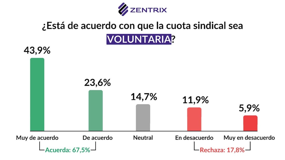 El 67,5% de los argentinos se manifiesta a favor de transformar la cuota sindical en un aporte voluntario.