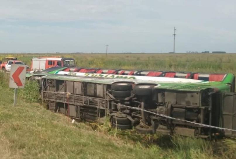 El hecho ocurrió este martes por la mañana a la altura de la localidad de General Pirán, cuando el micro turista, por circunstancias que se desconocen, volcó a la vera de la Ruta 2.