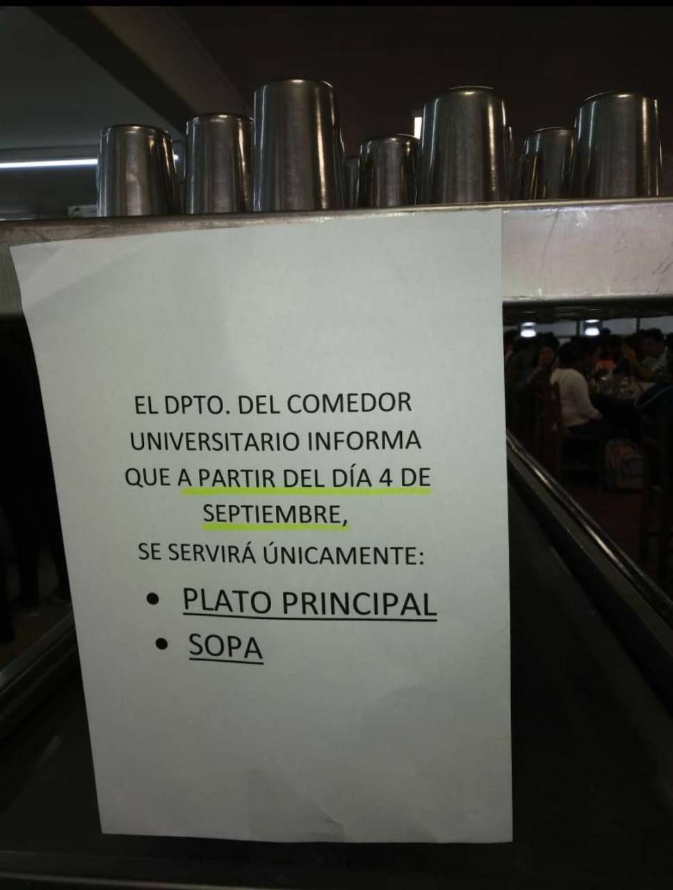 Sociedad04/09/2018Si bien trascendió que se debía a un “ajuste económico”, desde el departamento del comedor universitario informaron que la medida obedece a la toma del Rectorado por parte de un grupo de alumnos, hecho que imposibilita la compra de insumos. Versiones cruzadas.