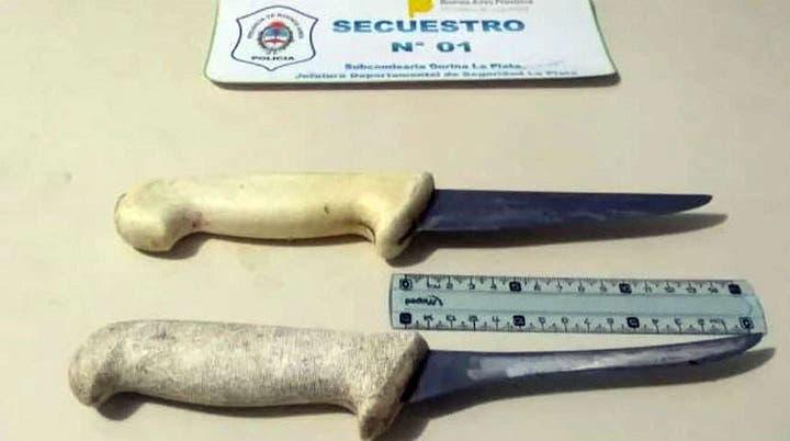 Cuando la policía llegó al lugar, el individuo todavía tenía los cuchillos en la espalda.